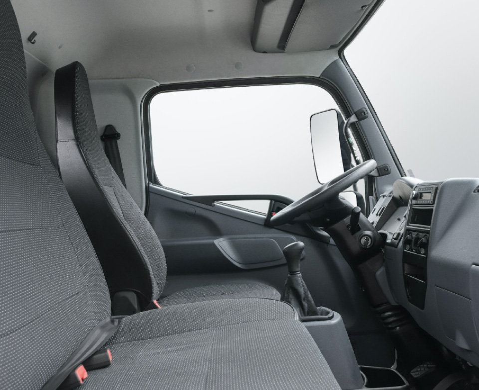 Um ótimo local para trabalhar: Bancos totalmente ajustáveis. Volante com regulação em altura e profundidade e transmissão de mudanças suaves. Teto revestido, acabamento lateral e um prático porta-objectos na consola para guardar pequenos objetos. Tudo isto numa cabine confortável que reduz a fadiga do condutor e aumenta a produtividade. Cabine com ar condicionado de série, vidros elétricos e sistema de fecho central disponíveis para maior conforto do condutor. Beleza em cada detalhe: Estilo, encaixe e acabamento. Estas luzes de pisca têm tudo.