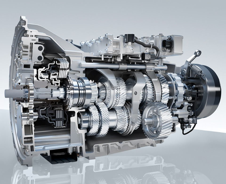 O mecanismo de dupla embraiagem DUONIC™ utiliza eixos separados para mudanças pares e ímpares. Assim, ao engrenar uma mudança, a seguinte é pré-selecionada intuitivamente. Esta construção única reduz significativamente o impacto nas mudanças de velocidade, e uma embraiagem mais durável significa menos tempo de inatividade. A transmissão torna as passagens de caixa um prazer. Permite também movimentos para a frente e para trás sem esforço a velocidades muito baixas, o que é ideal para horas de ponta e para manobras em áreas de carga estreitas.