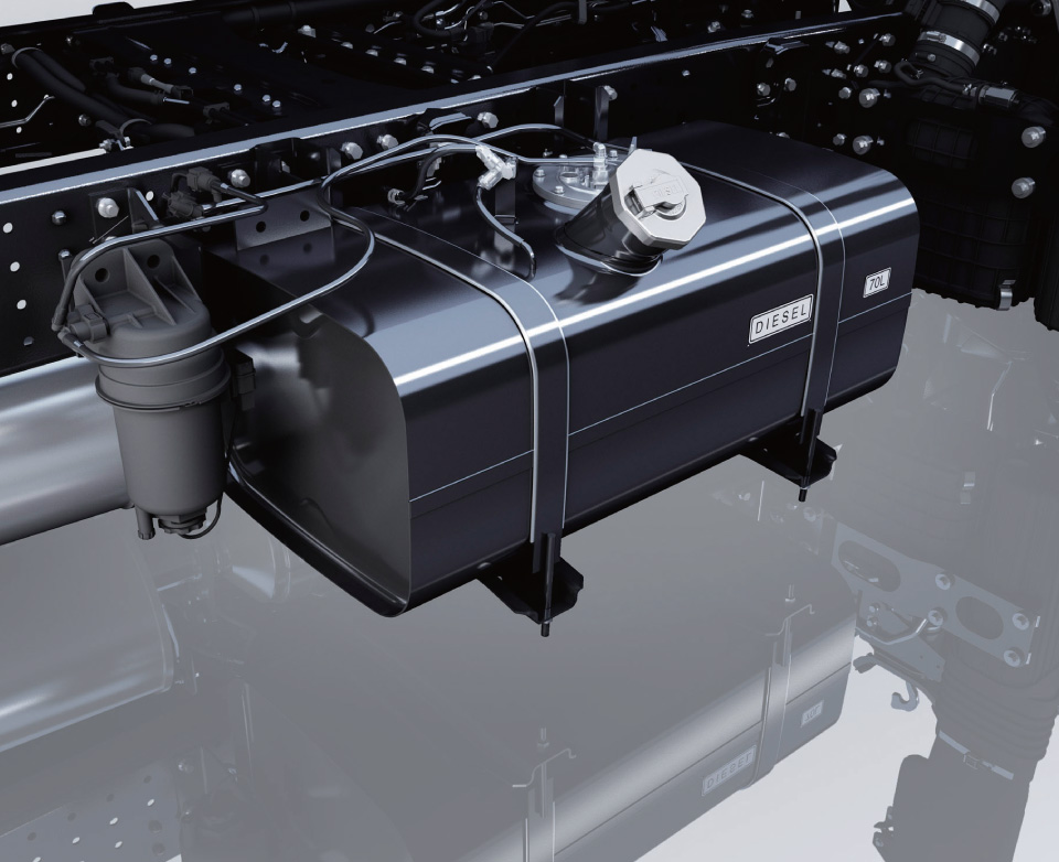 O design de chassis de última geração torna o FUSO CANTER LIFT adequado para uma vasta gama de aplicações de carroçaria. As secções laminadas a quente e rebitadas garantem uma estrutura de chassis robusta, mas flexível e leve. Os carris superiores do chassis, com furos pré-perfurados, permitem uma montagem rápida, fácil e mais acessível. Os nossos modelos GVM de 8,5 toneladas possuem um chassis de 850 mm de largura com barras estabilizadoras como equipamento de série, proporcionando maior estabilidade e minimizando o rolamento do chassis quando equipados com carroçarias de carga extra largas.